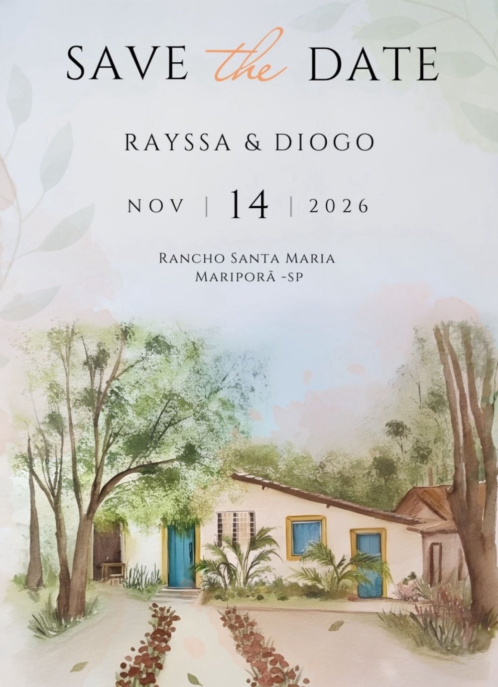 A cerimônia acontecerá no dia 14 de novembro de 2026, às 16h, no Rancho Santa Maria – Mairiporã.